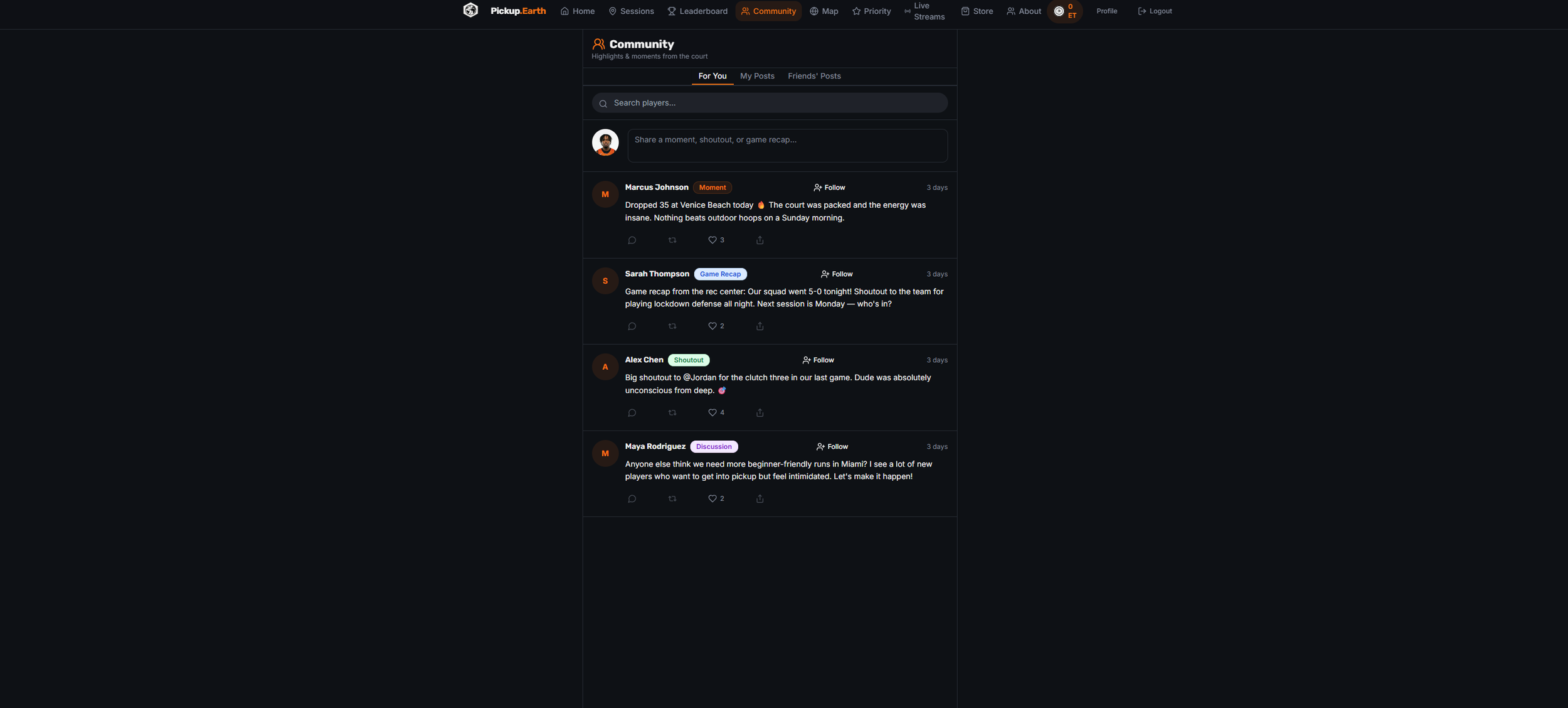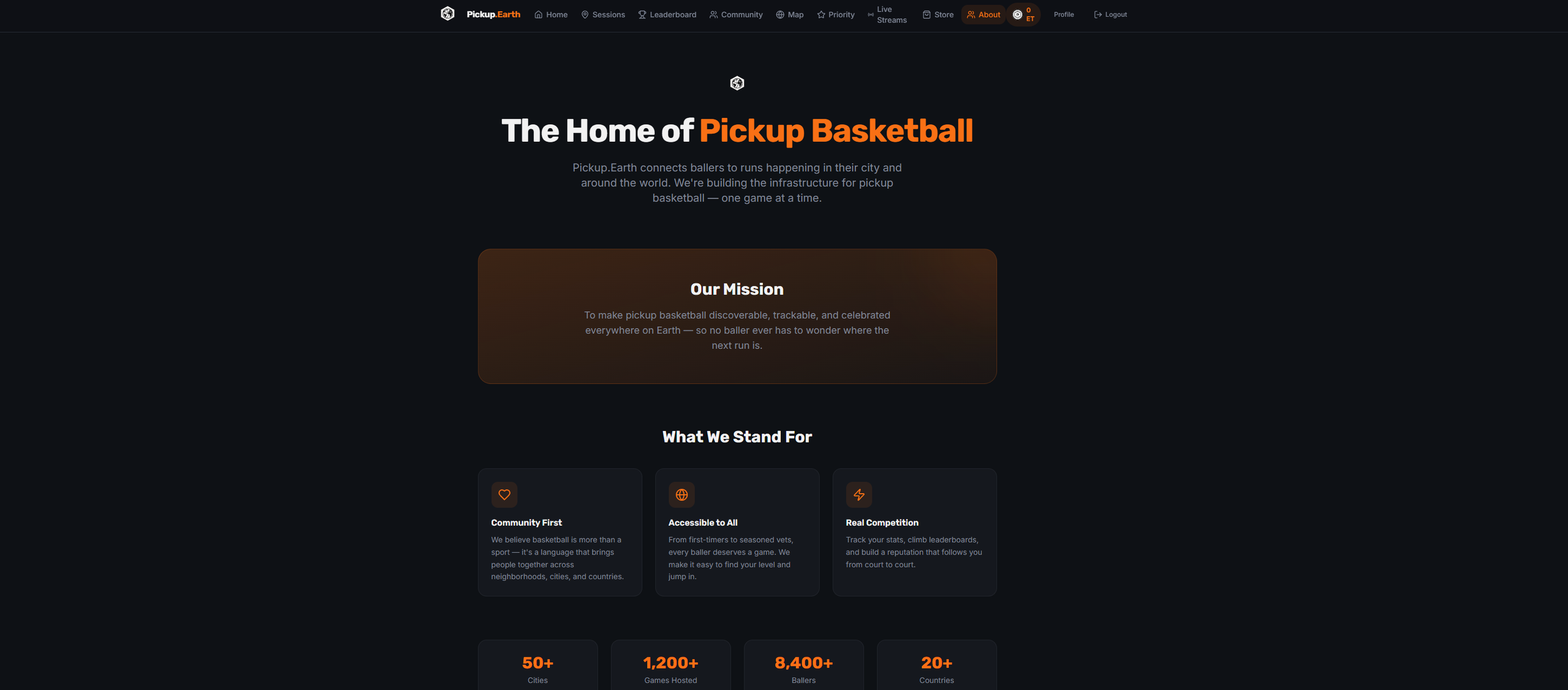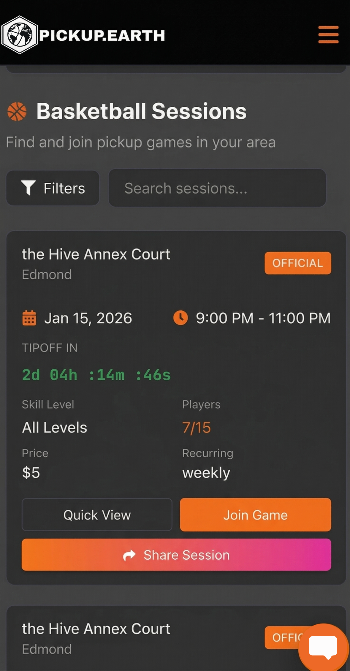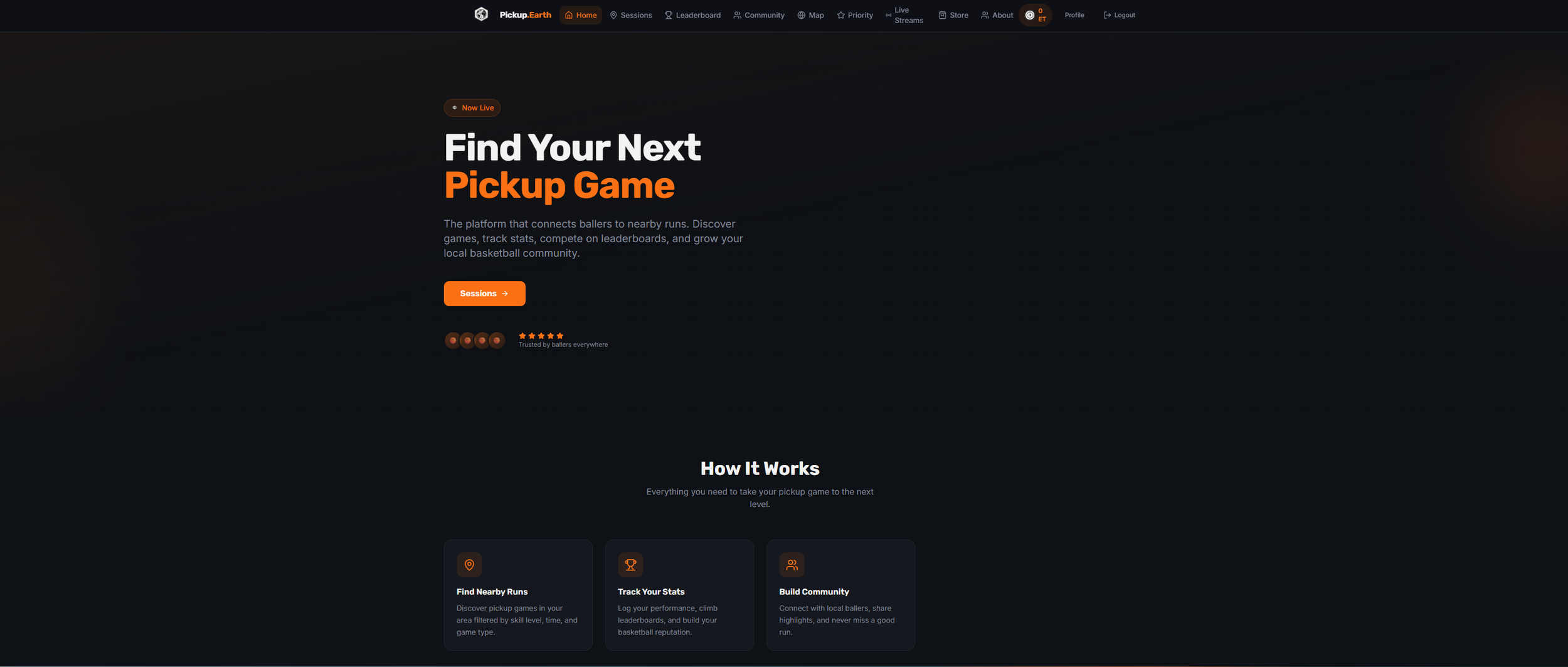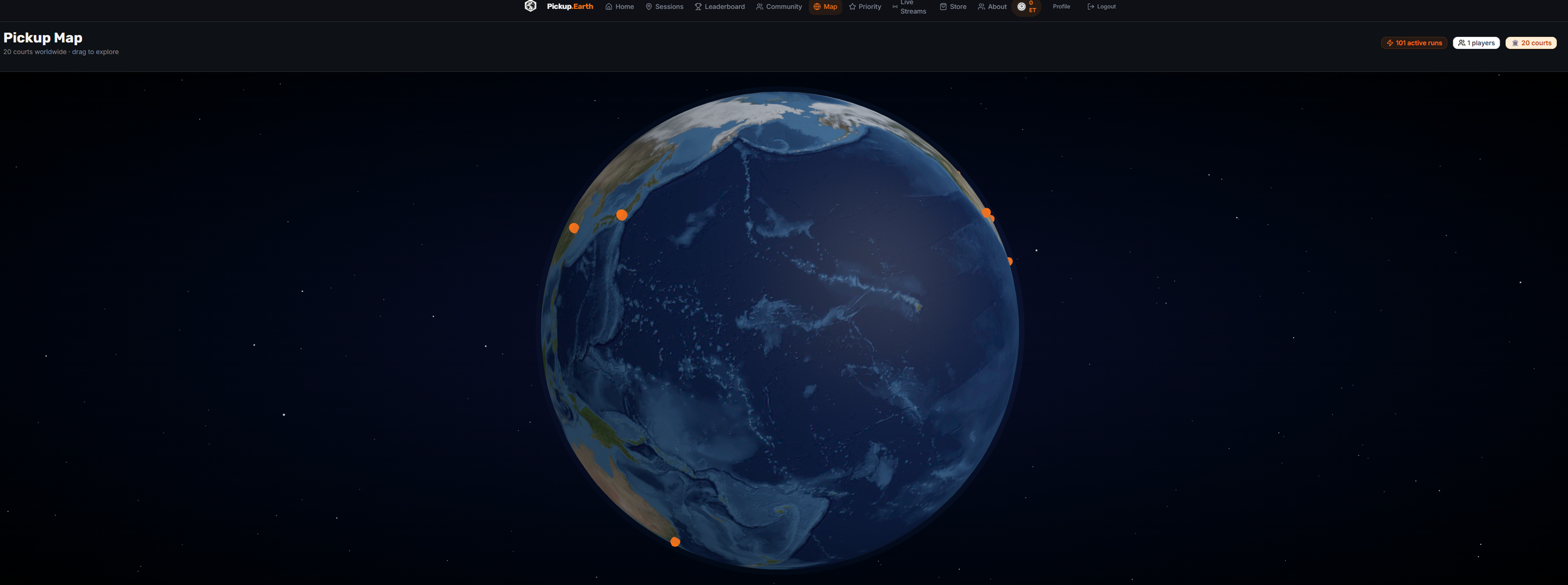 Pickup.Earth is a community-driven sports platform designed to help players find and join local pickup basketball games with less waiting, better organization, and more consistency. The goal was to eliminate the friction players experience when trying to find reliable runs.